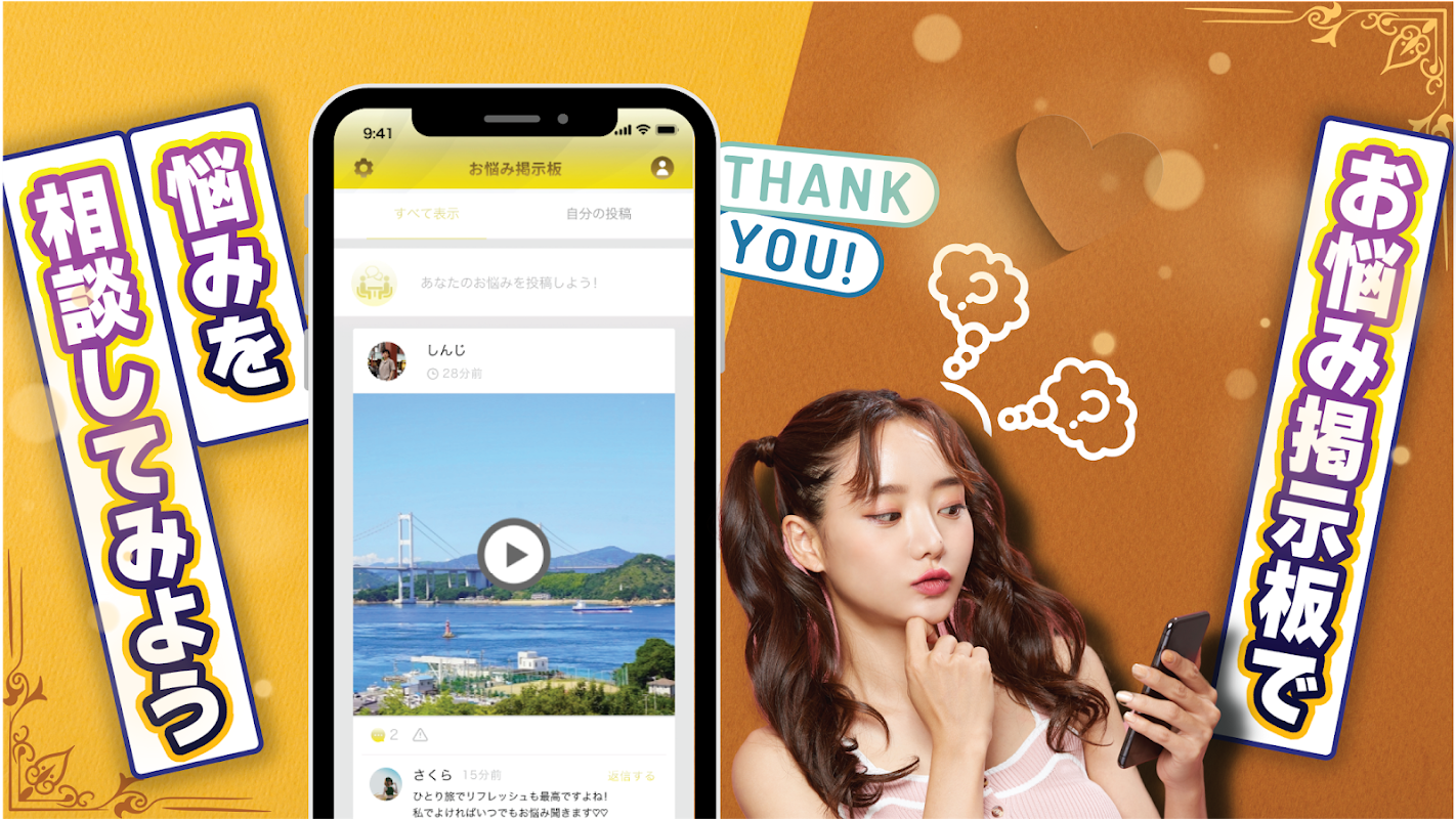 ビデオや電話、お悩み掲示板でフレンド作りもできる-スッキリン 1.0
