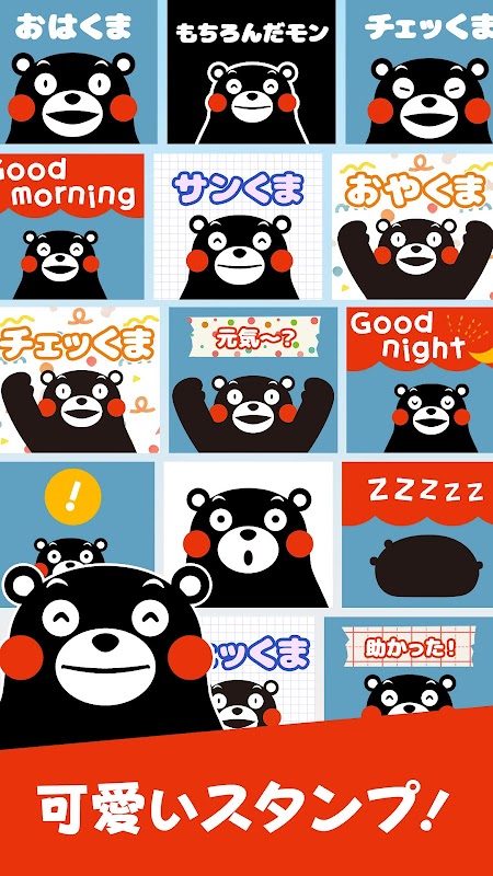 Poiché non è un'applicazione che legge timbri mediante comunicazioni come il sito WEB, può essere utilizzata in modo nitido. Rendi la tua app di messaggi come LINE, timeline SNS e talk line interessante con i timbri gratuiti Kumamon.