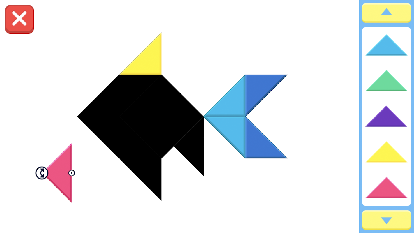 Esistono due modalità: "Modalità problema" in cui le lastre colorate triangolari sono disposte in modo che si adattino perfettamente alla silhouette e "Modalità creazione" in cui puoi divertirti liberamente a modellare.