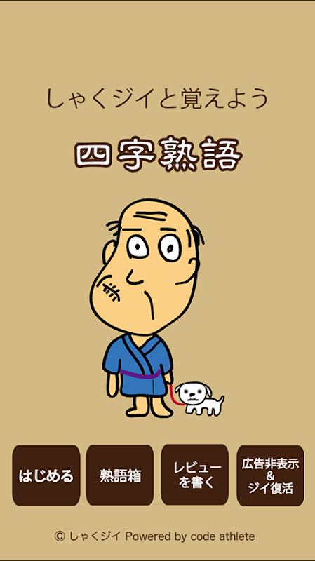 4つの漢字を順番に並べていき、出題された意味の四字熟語を完成して、しゃくジイに教えてあげよう!
