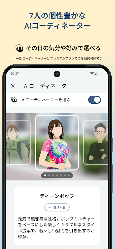 In base al profilo dell'utente e alle previsioni meteorologiche fornite dalla Japan Weather Association, l'intelligenza artificiale (fornita da OpenAI) suggerisce il coordinamento per la giornata.