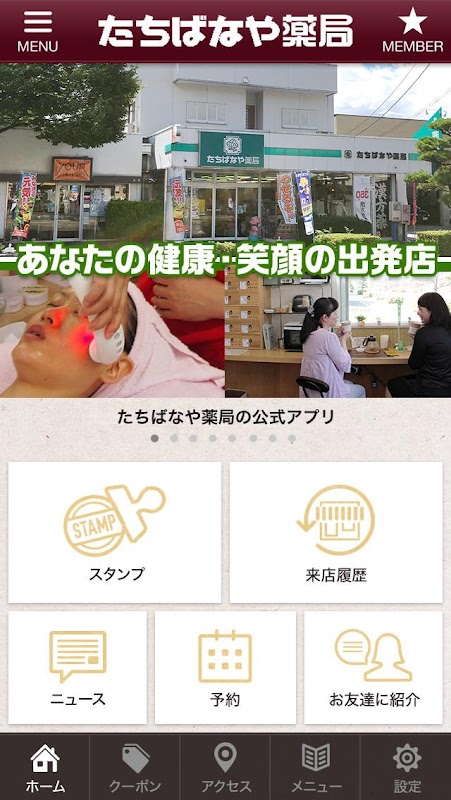 このアプリでは、たちばなや薬局の色々な情報やアプリユーザー限定のお得なサービスが手に入ります!
