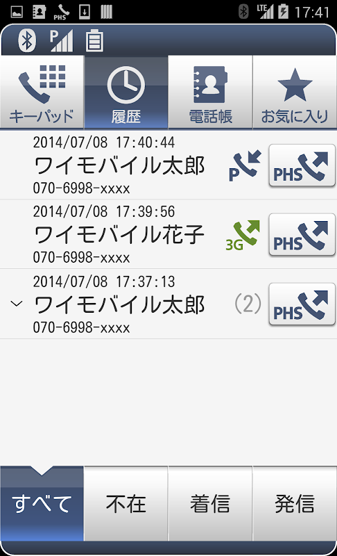 アプリ操作でワイモバイルのPHS回線を使用した発着信が可能になります。