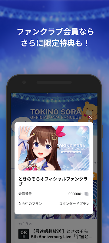 *Sia gli abbonati che quelli gratuiti devono creare un account sulla versione web del "Tokino Sora Official Fan Club" per utilizzare l'app.