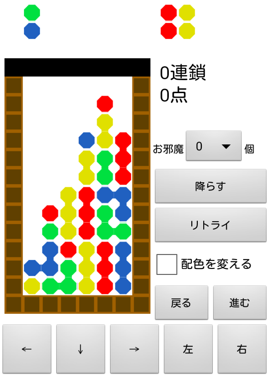 È un'app di simulazione Toko Puyo.Oltre a restituire e far avanzare la procedura, supporta anche i tentativi nello stesso / diverso array.