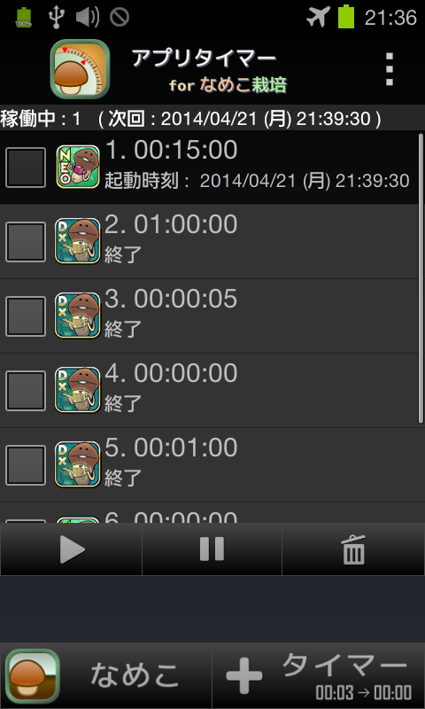 ※このアプリは"アプリタイマー"をおさわり探偵 なめこ栽培キット専用に改良したものです