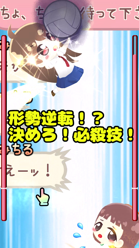 Un gioco d'azione di pallavolo facile da usare con simpatici personaggi! Divertiamoci in due modalità, "Story Mode" per conversazioni rilassanti e "Rally Battle" per battaglie 1vs1 con CPU!