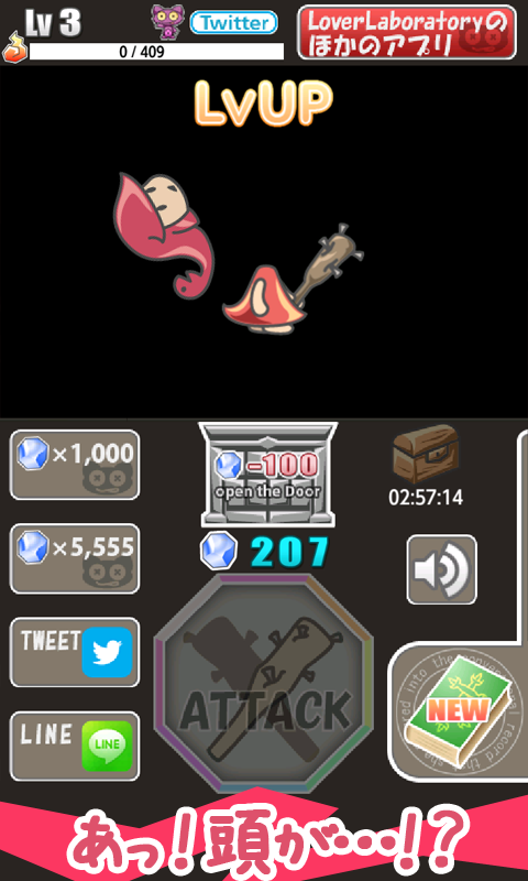 釘バットを振り回すルーシーたんの成長を見守るアプリです。