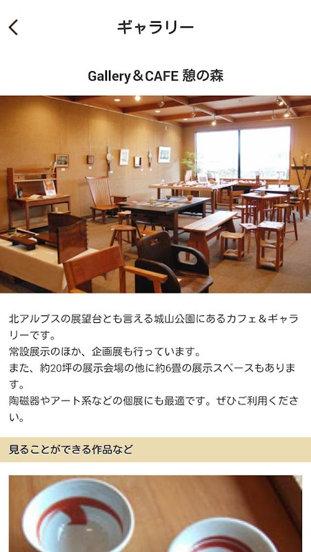 このアプリでは、「ギャラリー」・「カフェ・飲食店」・「イベント」・「マップ」から、まつもとクラフトナビに参加しているお店や、現在開催中のイベントなどを探すことができます。また、現在地からのルート案内もご利用いただけます。