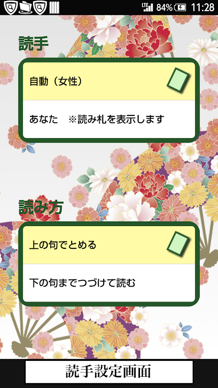 読み上げ方は、競技かるた向けの「上の句で読みを止めるモード」のほか、初心者にわかりやすい「下の句までつづけて読むモード」に対応しています。本格的な競技かるたから、ご家庭で楽しむちらし取りまで、幅広いシーンでご利用いただけます。