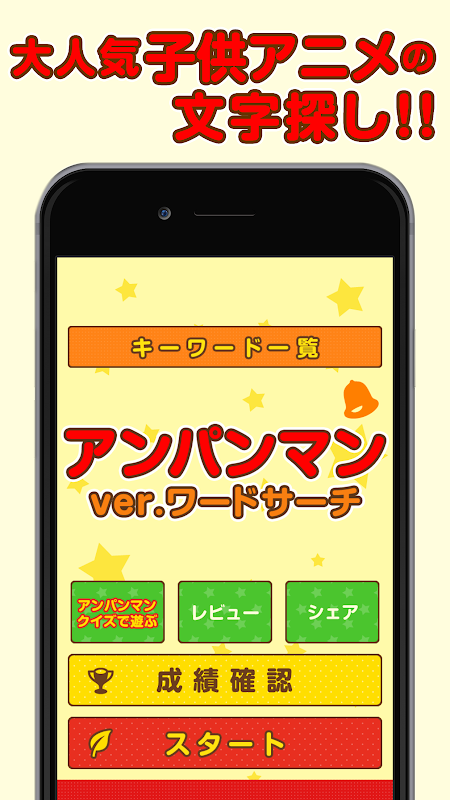 本アプリは、大人気アニメ『アンパンマン』に関するワードサーチ、ワードパズルアプリです。