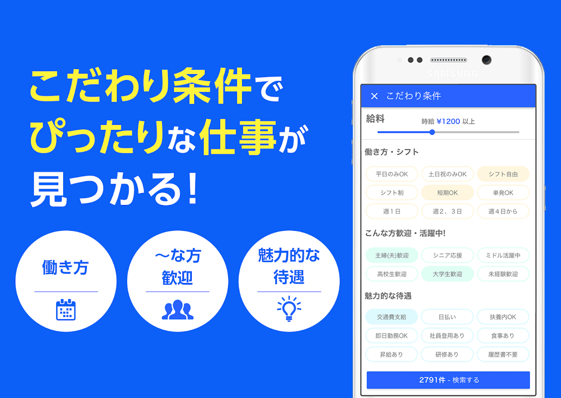 -Cerca facilmente un lavoro part-time adatto a te, in base a condizioni specifiche come "Area", "Stazione", "Occupazione", "Stipendio" e "Caratteristiche".