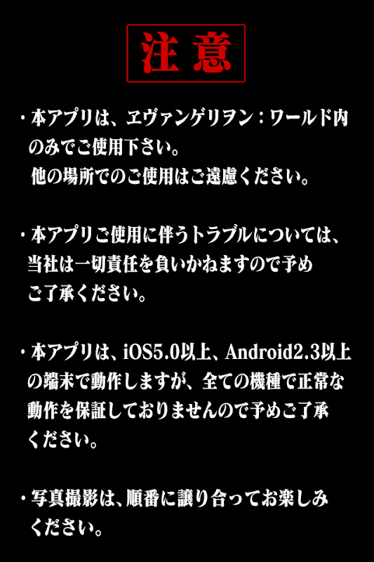 このアプリは富士急ハイランドが運営するエヴァンゲリオンワールドの公式アプリ"写真補完計画"です!!