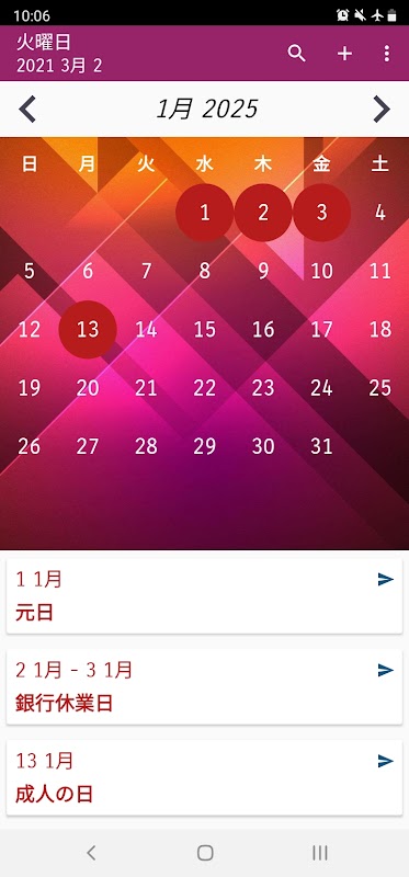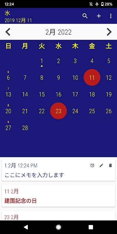Calendario carino e facile da usare Widget 2023 2024. Il calendario giapponese mostra le date delle festività giapponesi. Il calendario ha allarmi e widget. Quando suona la sveglia, verrà riprodotto l'inno nazionale giapponese (Kimigashiyo).Calendario carino.
