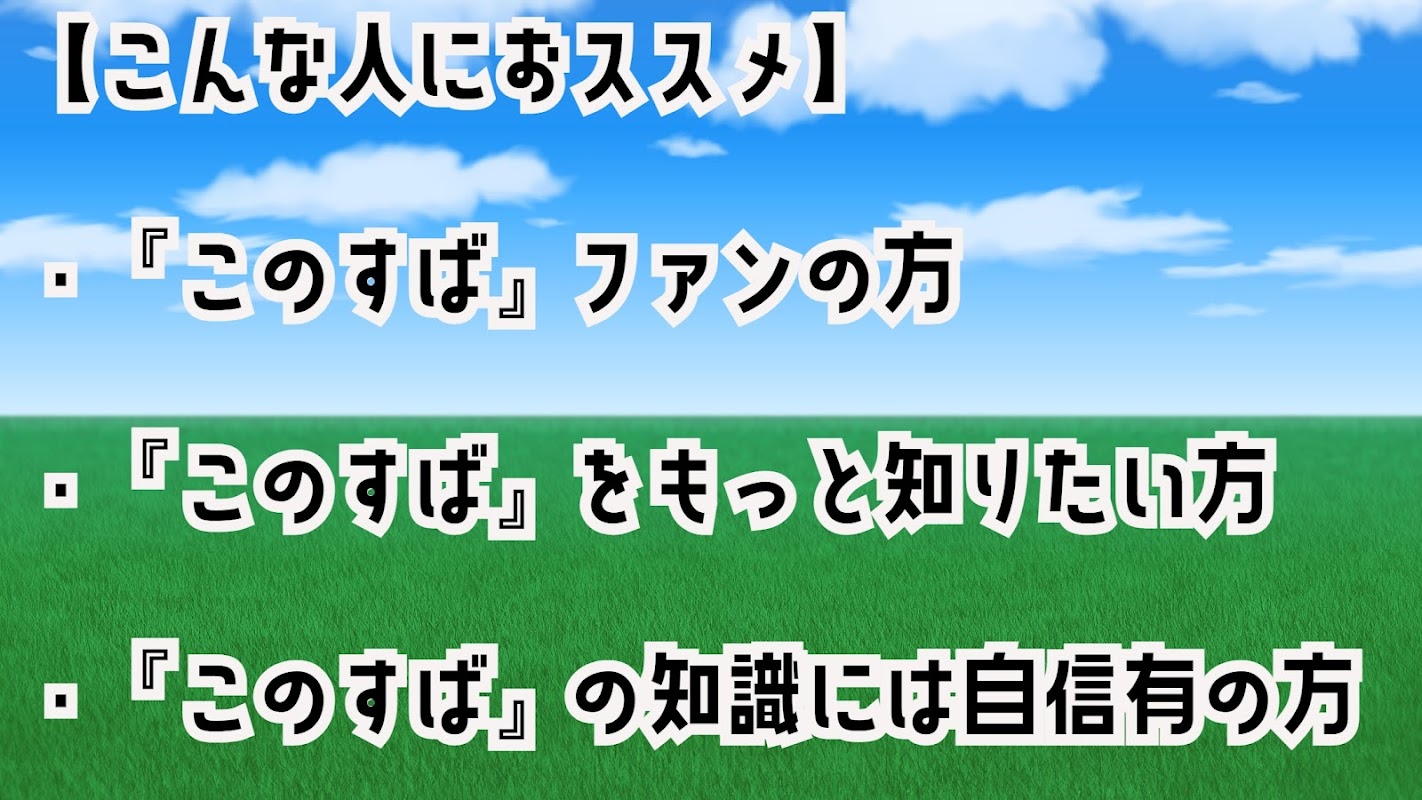 Il popolare anime "Beati in questo meraviglioso mondo! 』 Presentazione dell'app per i quiz. Abbiamo una vasta gamma di problemi da manga, anime, ecc.