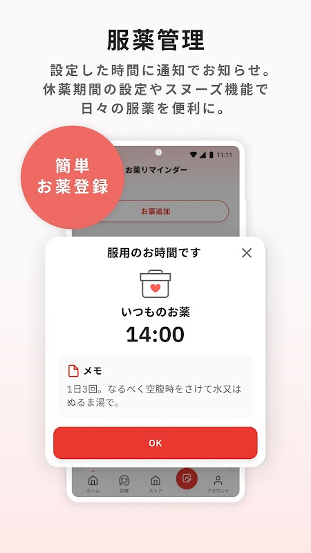 La comoda funzione di promemoria per i farmaci invia notifiche push per ricordarti di assumere i farmaci a orari prestabiliti, aiutandoti a gestirne l'assunzione.