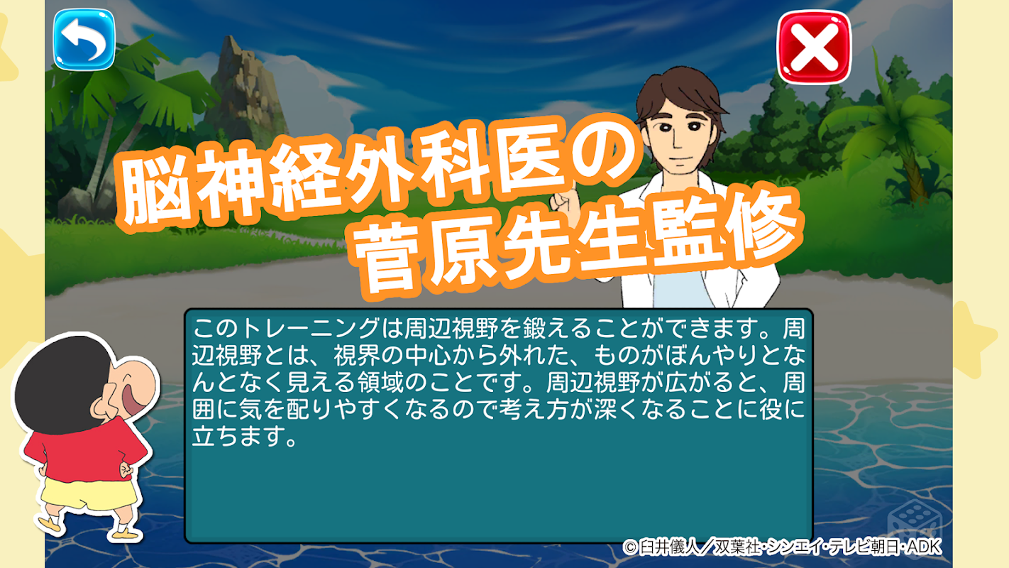 È un'app educativa per fare esercizi di cervello con Crayon Shin-chan.