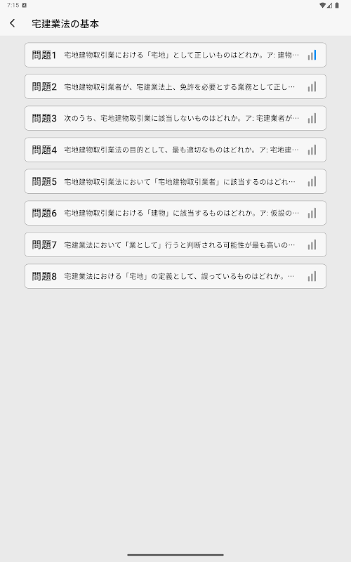 Puoi conoscere il settore immobiliare in modo efficiente. È possibile memorizzare le risposte corrette alle domande fino alle ultime tre volte. È perfetto per prepararsi all'esame immobiliare perché rende facile rivedere le domande che hai sbagliato e viene fornito anche con le spiegazioni.