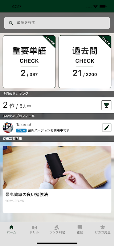 - Le parole sono classificate in base alla frequenza degli esami nazionali. Funzione "Verifica del vocabolario" essenziale per un apprendimento efficace