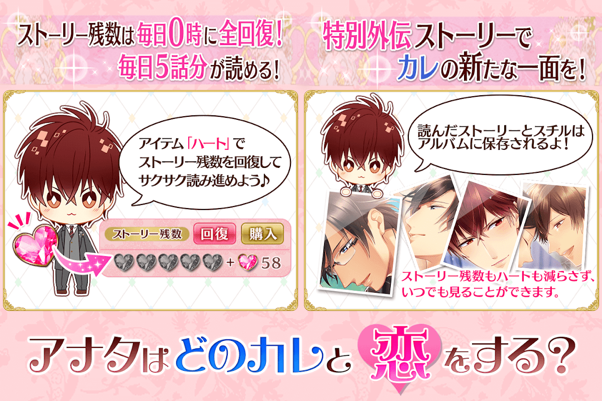 ✓他の恋愛ストーリーゲームと違ってミッションなし、アバターなし