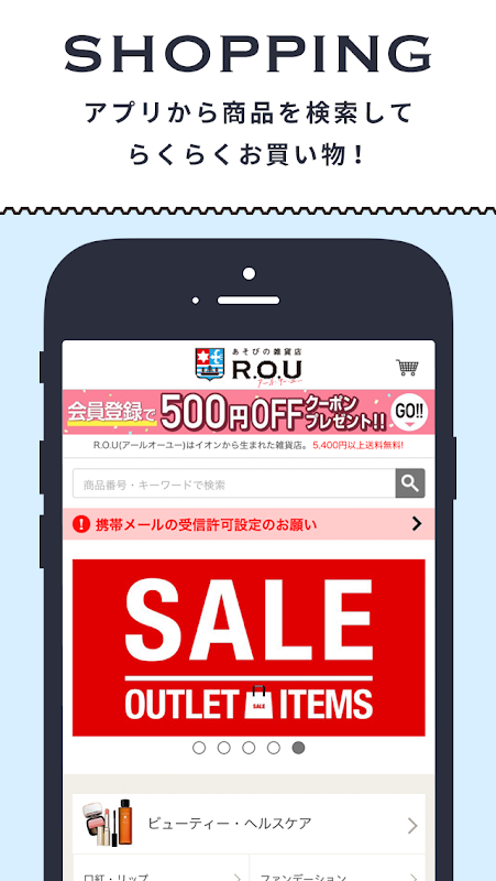 楽しい毎日の生活に「ひと工夫できる商品、情報」シーズンごとに変化するラインナップやクーポンなど、お得に楽しくわくわくを詰め込んだ、毎日の暮らしを思いっきり楽しむための雑貨店ROU公式アプリをご利用ください!