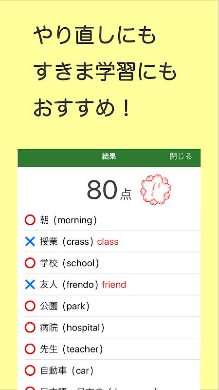 Ti senti nervoso a causa di un limite di tempo? ! Puoi imparare le parole inglesi senza annoiarti. (È anche possibile non impostare alcun limite di tempo)