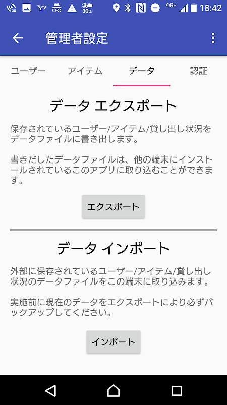 エクスポートしたデータは別の端末で取り込んで管理を統一することもできます。