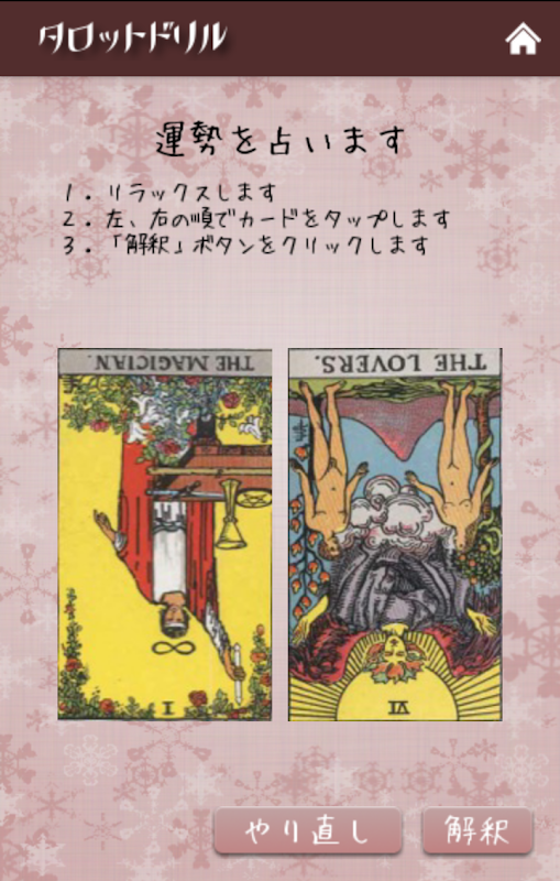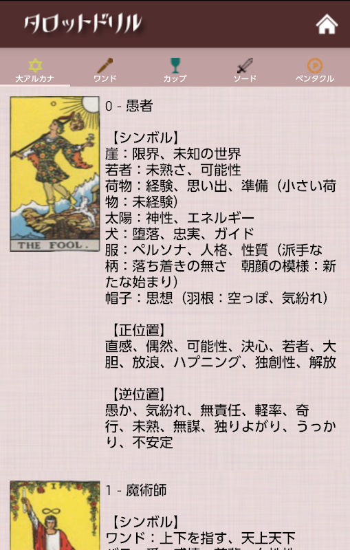 タロットドリル -タロット占いのやり方、恋愛、仕事、運勢占い 1.2.2