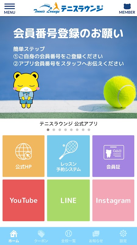 È un'applicazione per utilizzare la sala da tennis in modo più conveniente (solo per membri). Se registri il tuo numero di iscrizione nell'app, puoi utilizzare l'app come tessera.