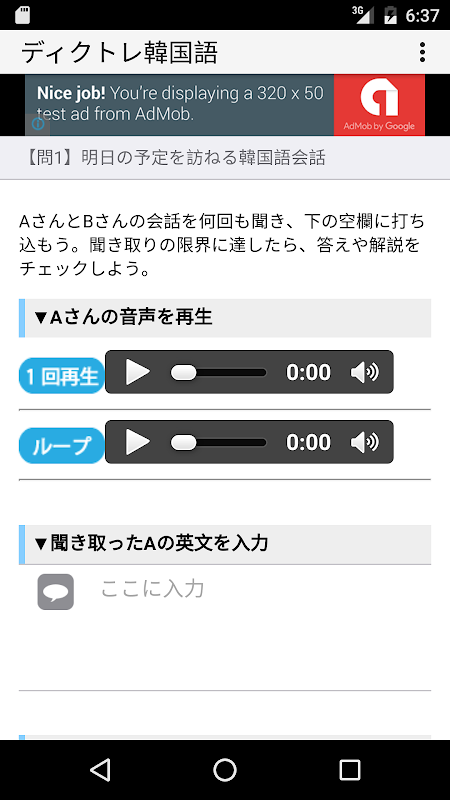 ※ L'applicazione coreana che può ascoltare apprendimento (dettatura). ※ "sentire" -> "tipo" -> migliorare la forza di ascolto "risponde con".