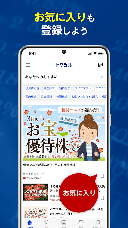 Distribuire contenuti come "meccanismi come azioni e fondi comuni di investimento", "destinazioni di investimento promettenti", "come utilizzare sistemi come NISA e iDeCo", "prospettive di economia e mercato", "piani di vita e metodi di miglioramento della famiglia" negli articoli e video. aumentare.