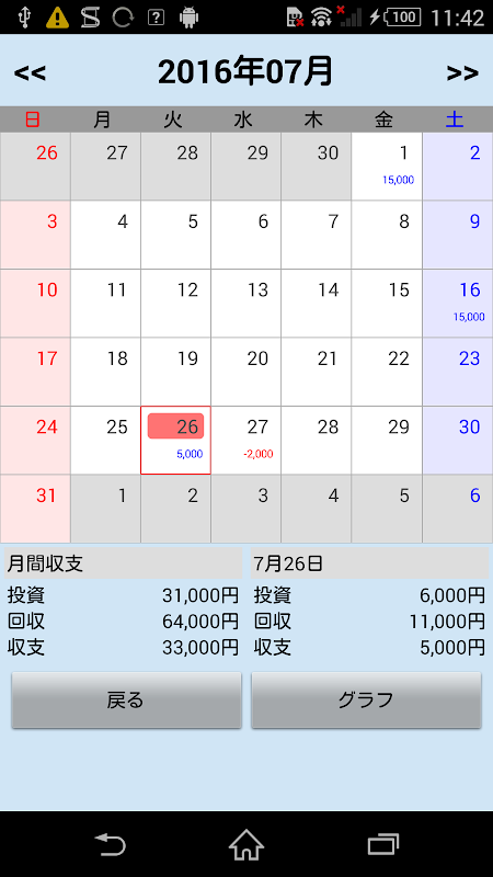 入力操作は簡単で、収支をグラフで見ることも可能です。