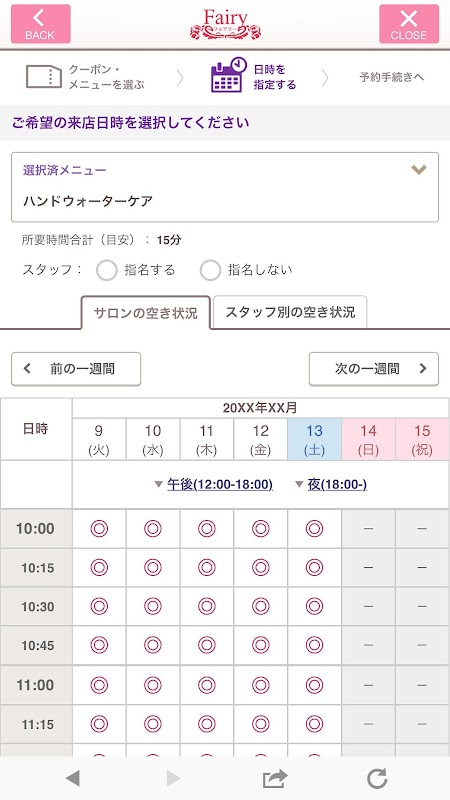ご希望のメニューから日時を指定して送信するだけでご予約頂けます。
