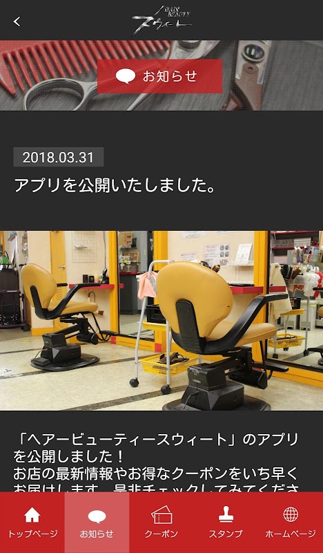 三重県名張市にある美容室【HAIR BEAUTY Sweet - ヘアービューティースウィート -】の公式アプリが登場しました!