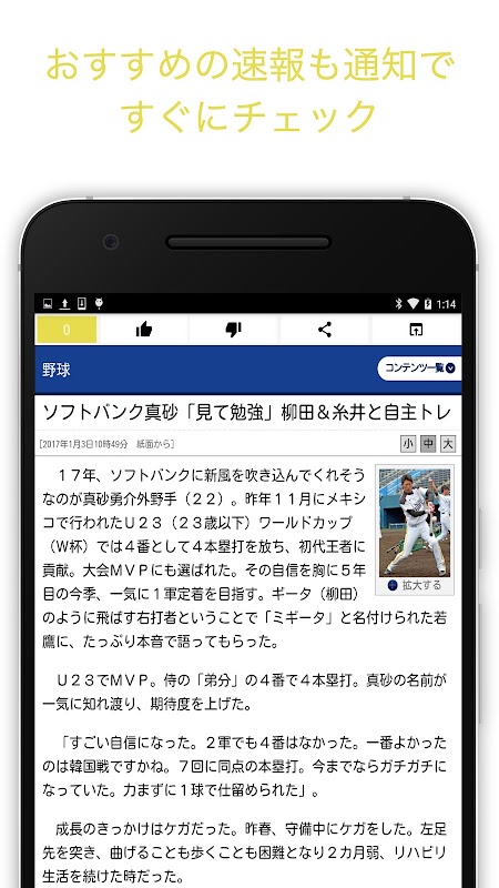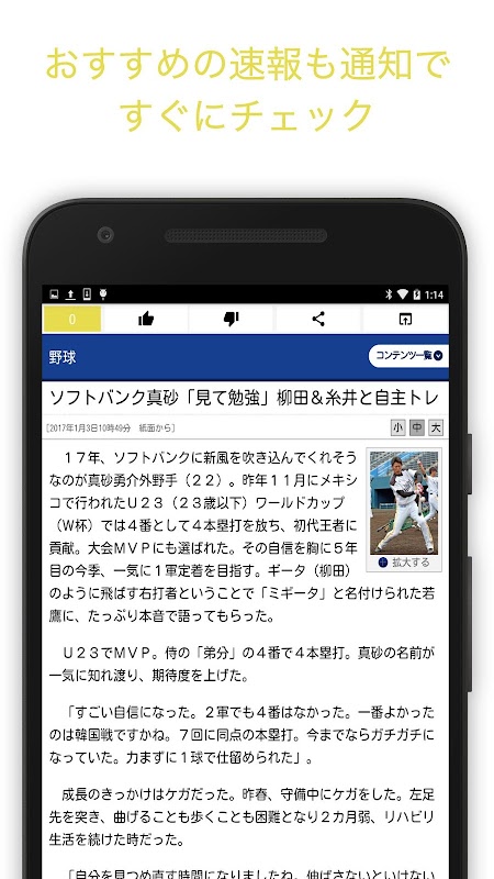 プロ野球の試合30分前通知や、朝昼晩の注目のニュース通知を受け取ることもできます。