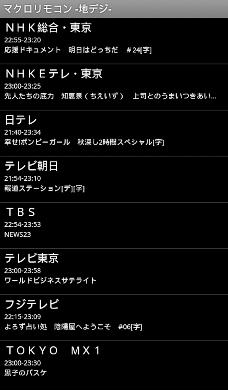 地デジとBSは放送中の番組名を表示する事も出来ます(「Gガイド.テレビ王国」のRSSに依存)