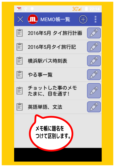 Memo メモ帳 です。画像 文章 PDF リンク 現在地を貼り付けます。旅行の計画や記録、時刻表や予定など、メモ帳としてさまざまな用途に対応できます。