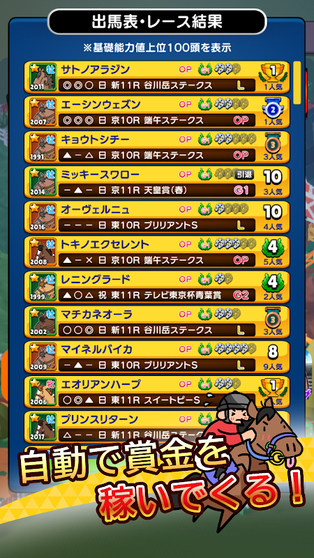 Anche se lasci così com'è il cavallo da corsa ottenuto, puoi entrare automaticamente in gara e guadagnare premi in denaro, ma puoi anche decidere la rotazione di ogni cavallo impostandolo come preferito.