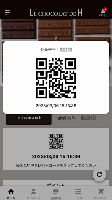 Un'app dedicata per la cioccolateria "LE CHOCOLAT DE H" creata dal cioccolatiere Hironobu Tsujiguchi. Consegneremo coupon e biglietti per lo shopping solo per app con informazioni vantaggiose e registrazione dei membri.