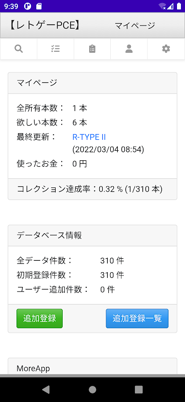 レトロゲーム(PCE)を管理するアプリです。
