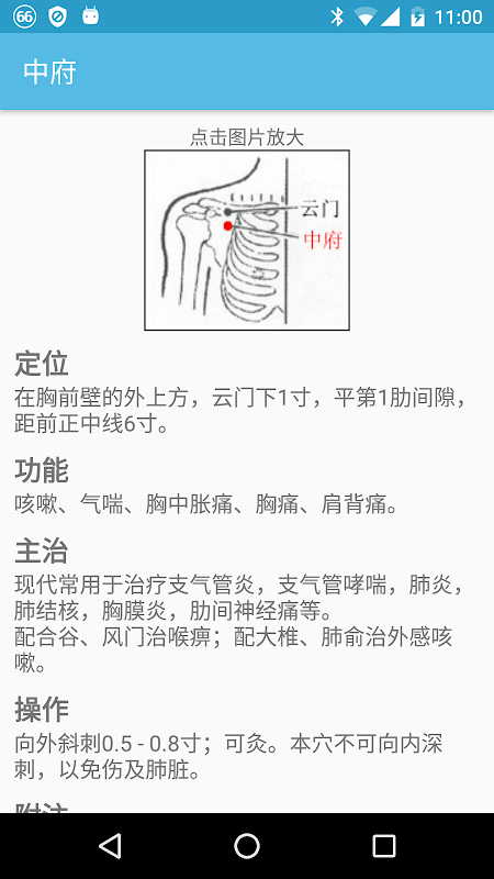 Una delle serie di applicazioni di medicina cinese. Sotto forma di atlante, presenta in dettaglio il posizionamento, la funzione, le indicazioni, le tecniche operative e le precauzioni di oltre 400 punti terapeutici dei dodici meridiani e degli otto meridiani extra. Fornisce una rapida ricerca dei punti di agopuntura. Gli utenti Premium possono prendere appunti, contrassegnare i punti terapeutici di interesse per un rapido accesso in un secondo momento e aggiungere essi stessi i punti terapeutici. Con la funzione di query avanzata, puoi eseguire query in base a parole chiave relative a malattie o sintomi. Si tratta di un software compatto e pratico con un'interfaccia utente semplice e intuitiva, che non solo può fungere da comodo assistente per i professionisti dell'agopuntura MTC, ma anche fornire una piattaforma per l'autoapprendimento dell'agopuntura e della moxibustione per la maggior parte degli appassionati di MTC.