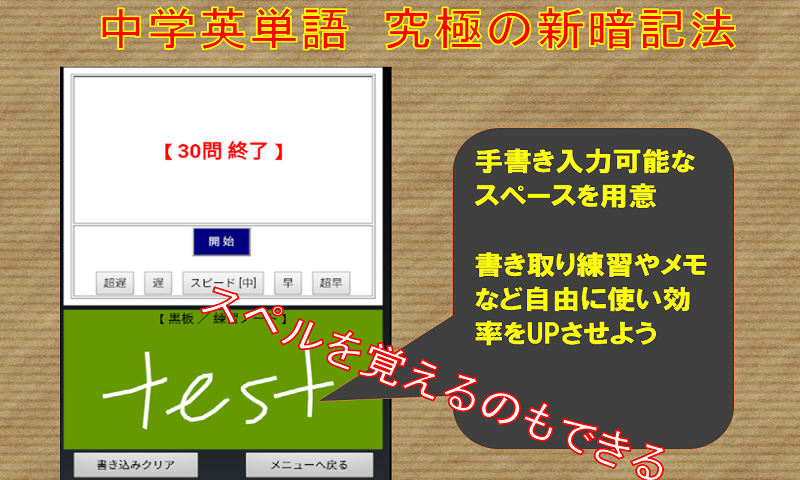 中学校英単語 究極の新暗記法!5分で1000単語を目指します。このアプリで英単語を学習すれば、最終的に「5分で1000単語」の確認が可能となります。