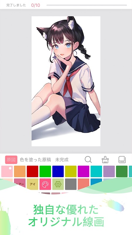 二次元塗り絵は従来の彩色図書アプリからアップグレードし、よりファッショナブルでモダンな作品をお届けします。それぞれの絵は、いくつかの領域に分かれていて、あなたは、あらかじめ決められた領域に応じて、各部分ごとに異なる色を選択して塗るだけで、美しい芸術作品を完成させることができます。少女、子供、そして様々な人々の想像力と創造力に刺激を与えることは、素晴らしい選択です。