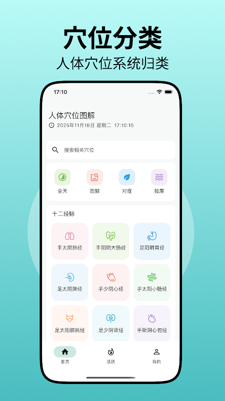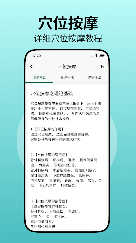 Attraverso questa applicazione è possibile trovare facilmente centinaia di punti di agopuntura nel corpo umano e vengono fornite introduzioni grafiche e testuali per lo studio e la ricerca.