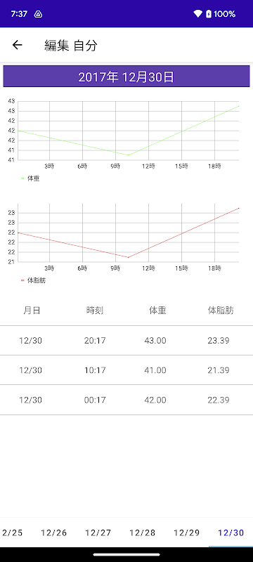 体重 体脂肪 記録帳 体重管理と体重グラフを表示します