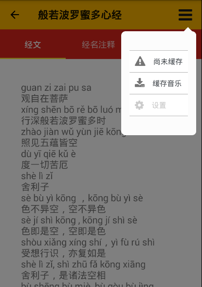 Nessuna pubblicità, l'audio supporta la memorizzazione nella cache offline. Sono state raccolte molte scritture e mantra buddisti e ci sono introduzioni e musica corrispondenti, canti, pinyin, sanscrito e altre notazioni fonetiche. Giocabile senza connessione a Internet dopo il download