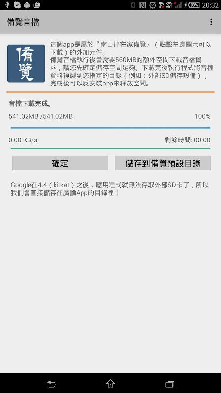備覽音檔執行後會需要560MB的額外空間下載音檔資料,請您先確定儲存空間足夠。