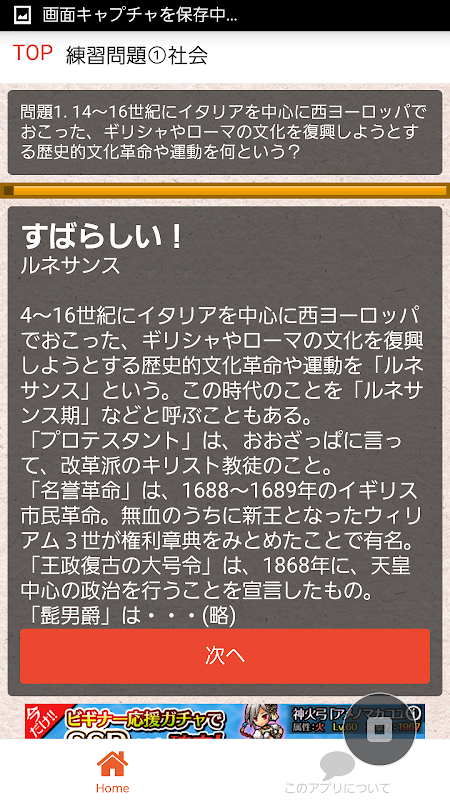 このアプリは公立高校を受験する中学生に向けて歴史・経済・公民を題材とした非公式の無料学習アプリです。今から始まる5教科で社会は覚えれば点数が取れます。