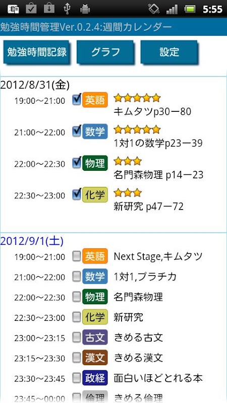 勉強時間管理 -勉強の計画と記録 3.8.5