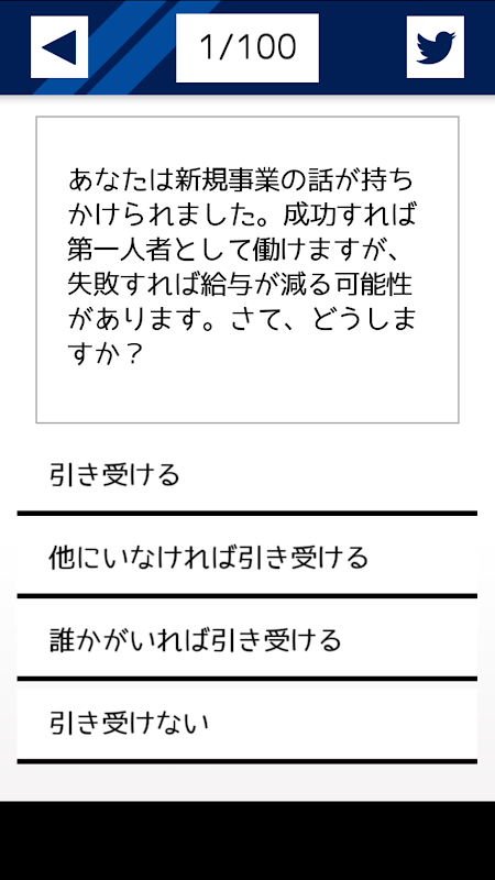 このアプリは簡単な質問に答えるだけで、あなたの勝負強さがわかります。
